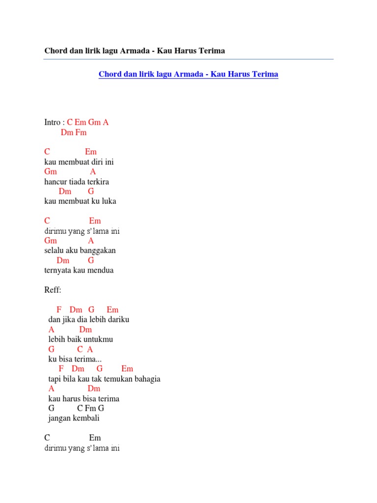 Armada Kau Harus Terima / Acordes, letra y tablatura de la canción kau harus terima de armada.