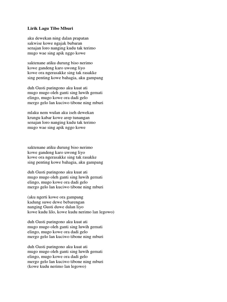 Duh Gusti Paringono Aku Kuat Ati Lirik / (kowe ngerti aku ora gampang kadung suwe dewe bebarengan nanging gusti duwe dalan liyo aku kudu lilo, aku kudu nerimo lan legowo).