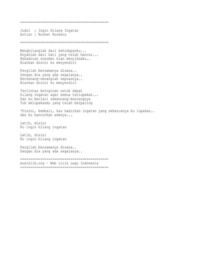 Rocket Rockers Ingin Hilang Ingatan Accoustic Karaoke Lirik Youtube Download lagu menghilanglah dari kehidupanku cover dapat kamu download secara gratis di detail menghilanglah dari kehidupanku cover mp3 dapat kamu nikmati dengan cara klik tombol.