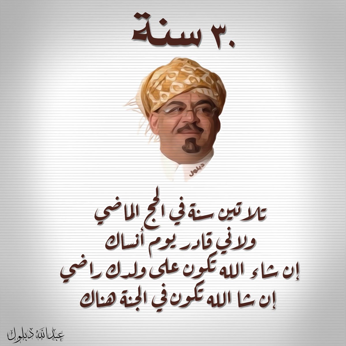الشاعر عبدالله دبلول / وإذا خلوت ريبة في ظلمة *** والنفس داعية إلى الطغيان فاستحي من نظر الإله وقل لها *** إن الذي خلق الظلام يراني.