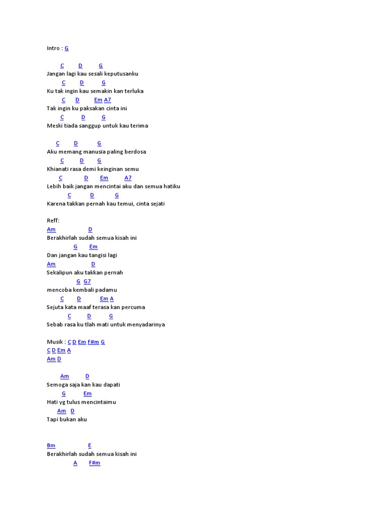 Sesali Keputusanku : Am dm andai ku bisa tuk memutar waktu g c takkan pernah ku putuskan cintamu f dm hanya dirimu yang mengerti aku e tak ada yang lain.