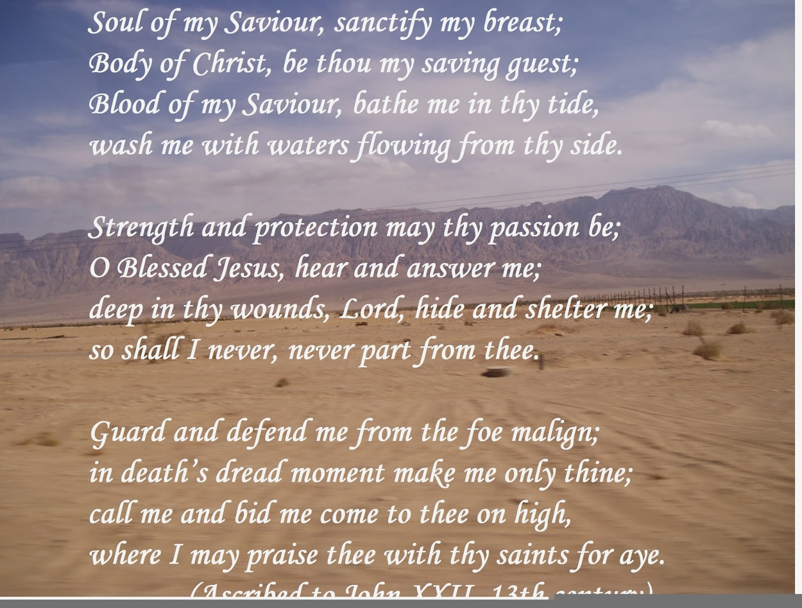 Soul Of My Saviour Song - Blood of my saviour, bathe me in thy tide, wash me with water flowing from thy side.