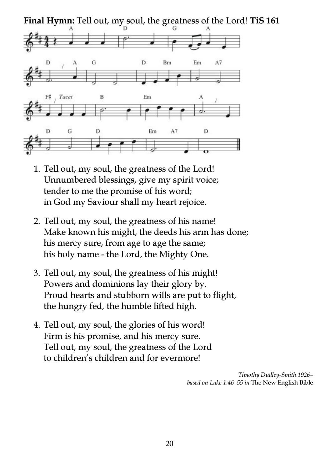 Tell Out My Soul The Greatness Of The Lord / In god my saviour shall tell out, my soul, the greatness of his might!